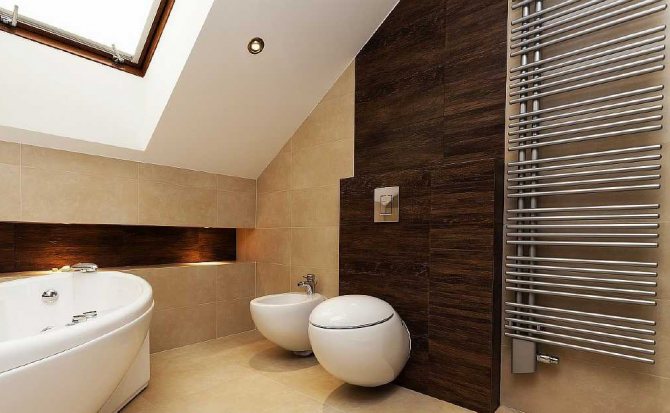 Важно! Също толкова ценна е естетическата функция на нагревателя за кърпи в банята. Поради това е необходимо правилно да се подходи към избора на нова система, така че тя да се превърне в пълноправен елемент на интериора и да служи не само като практично устройство, но и като декоративна част от целия дизайн на банята.