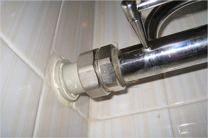 Всички свързващи и спирателни кранове, по време на работа на отопляемата релса за кърпи, са под работно налягане на гореща вода, следователно запояване и изпитване под налягане на полипропиленови тръби трябва да се извършват в пълно съответствие с технологията и при сглобяването на всички резбовани използвайте флуоропластична уплътнителна лента (FUM).