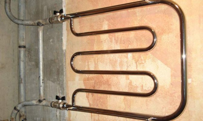Ако имате възможност да използвате газово ацетиленово заваряване, тогава подаването и отвеждането на гореща вода към отопляемата релса за кърпи се извършва най-добре с помощта на метални водопроводни тръби. Ако това не е възможно, тогава полипропиленовите водопроводни тръби с подходящи спирателни клапани могат да се използват за свързване на намотката към общ щранг.