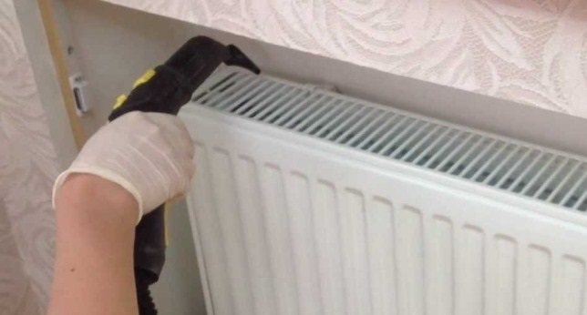 5. Парогенератор. Парогенераторът ще се справи отлично с мръсотията и мазнините по отоплителните радиатори. За да предотвратите развалянето на гореща пара от боядисаната или облицована стена и цокъл, покрийте всички повърхности с фолио.