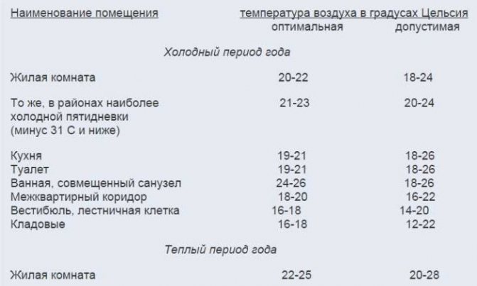 Регулирането на температурата се извършва в съответствие с GOST и правилата на организацията, предоставяща комунални услуги.