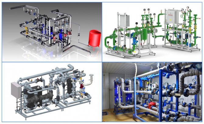 Преходът от 115 ° C към необходимата температурна стойност се осигурява от топлообменници с плочи или черупки. При когенерацията отработената пара от турбините се подава към топлообменниците за генериране на електричество. Според регулаторните изисквания температурата на водата в отоплителните тръби не трябва да надвишава 105 ° C, долната граница зависи от външните условия. В този диапазон отоплението на водата в отоплителната мрежа се регулира в зависимост от времето, за което има температурен график за отоплителната система във всяко котелно помещение. За домашни мрежи се използват 2 графика за изчисление: