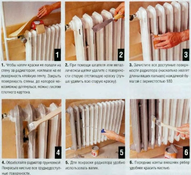 Не забравяйте да обърнете внимание на важна подробност - батериите трябва да бъдат боядисани студено! При боядисване на нагрята повърхност боята лежи неравномерно, мехурчета, бръчки. Следователно цялата работа от този вид трябва да се извършва в неотоплителен сезон.