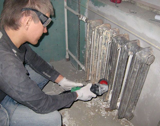 - При условие, че старото покритие е отпаднало почти напълно, отоплението на радиаторите може да бъде боядисано само при условие на сериозна подготвителна работа, която изисква използването на четка, оборудвана с желязна четина, или специален разтвор за измиване с добавяне на определено количество алкали.