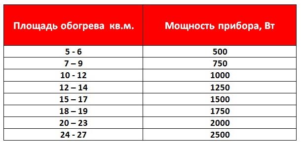 - топлинна мощност за отопление 1 кв. m - 100 W;