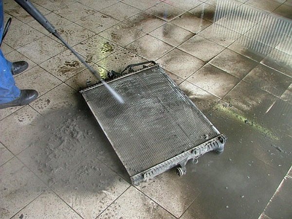 - струя вода под налягане премахва праха, мръсотията и насекомите от повърхността на радиатора.