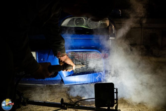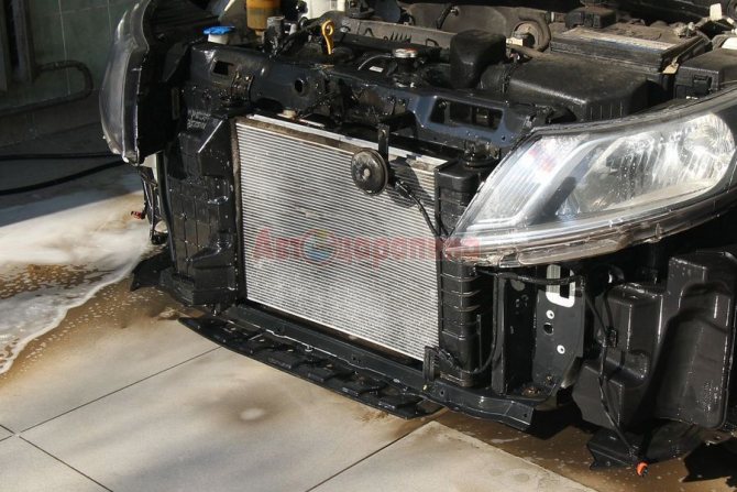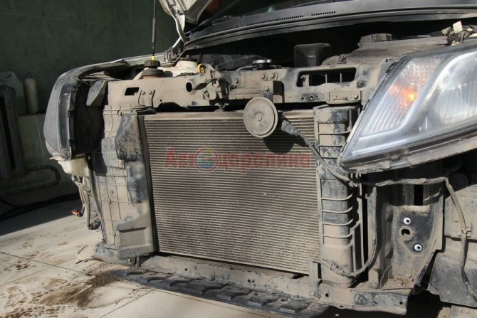 - демонтиране на предната броня на автомобила (при някои модели автомобили е невъзможно да се премахне радиаторът, без да се демонтира бронята);