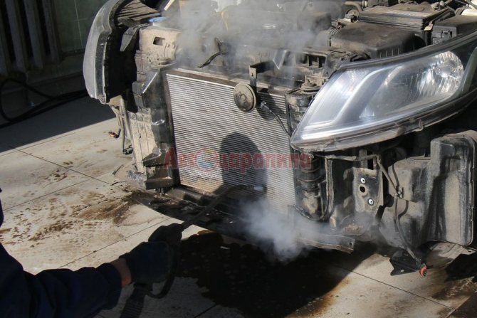 Тези фактори не трябва да се пренебрегват, което може да доведе до прегряване на двигателя, което ще бъде сигнализирано не само от сензора, но и от откъснатата от парата капачка на разширителния резервоар, но почистете топлообменника отвътре или отвън в зависимост от вид замърсяване.