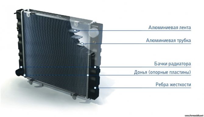 - капацитет на охлаждащата течност вътре в радиатора - 0,4 - 0,6 l;