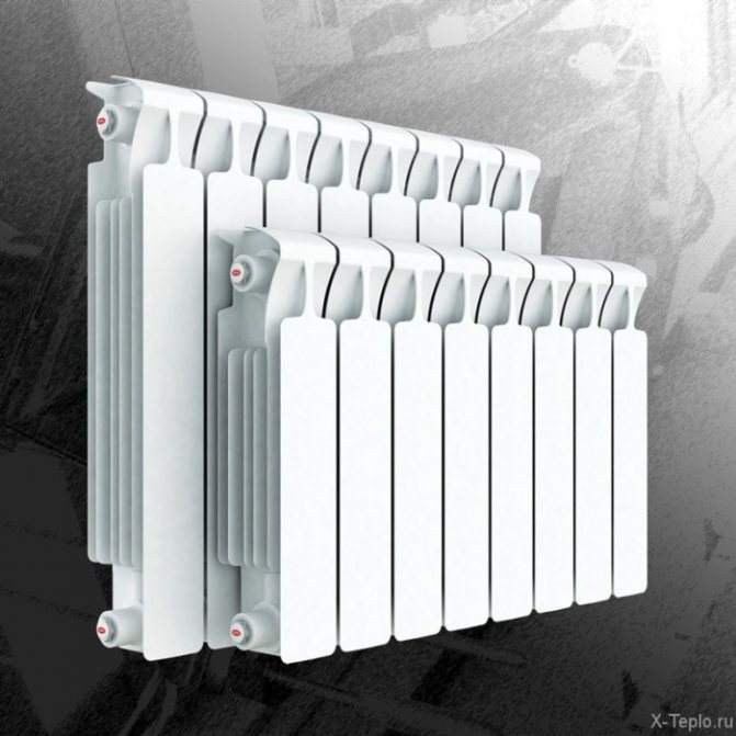 Общият брой на секциите не се различава от монолита - 4 ... 14. Недостатъкът, който е присъщ на всички биметални отоплителни радиатори от серията Rifar Base, е изискването да се използват определени видове охлаждаща течност.Ако това изискване бъде пренебрегнато, радиаторът може да се повреди.