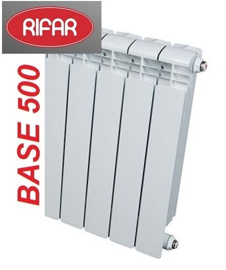Моделът Rifar Base 500 се счита за оптимален избор за помещения, които имат значителни кадри или не са много добре изолирани. Всяка секция включва тръба от неръждаема стомана. За основния материал се използват алуминиеви сплави. Процесът на леене се извършва при повишено налягане, което гарантира висока якост и издръжливост. Стените на перките са достатъчно тънки, за да осигурят възможно най-висок топлообмен.