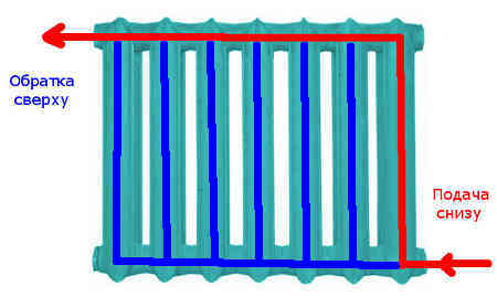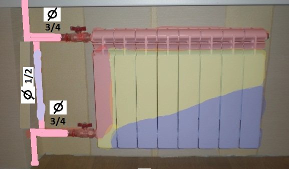 Тази ситуация може да бъде коригирана чрез симулиране на диагоналната верига с помощта на инжекционна тръба. Той увеличава дебита и нагревателят се загрява равномерно. Но не трябва да правите това сами, затова е по-добре да поверите това на водопроводчик от управляващата компания.