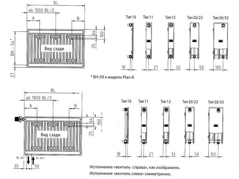 - различни опции за захранване на отоплителни тръби позволяват инсталирането на радиатори при всякакви условия;