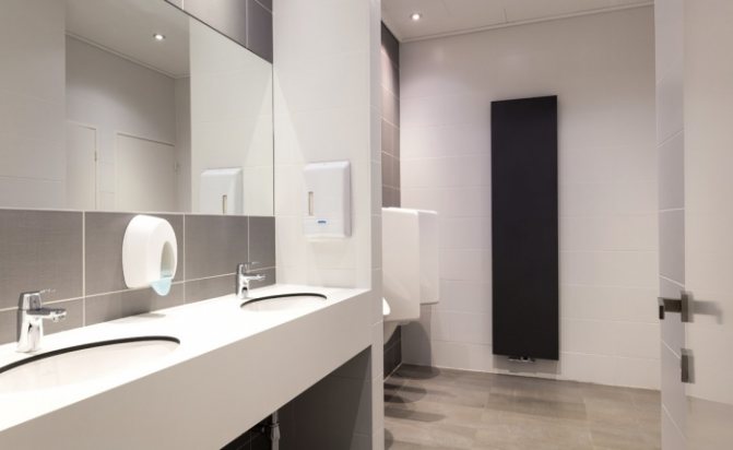 - Първо, класическата версия на радиаторите за баня е вертикалните батерии. Има три групи: традиционни с тръбни секции, с отместени секции спрямо центъра на радиатора, със секции под формата на щори за прозорци. Последният поглед е новост за сезона.