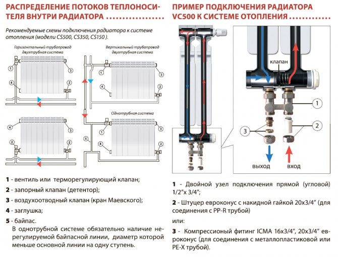 Диаграмата на потока на охлаждащата течност в биметални радиатори с долна връзка