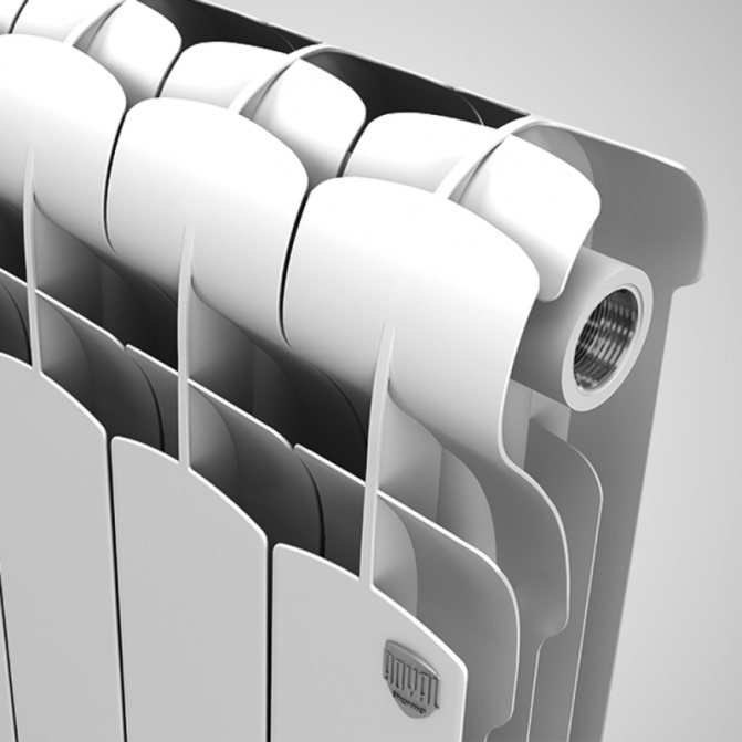 - Биметални - q = 180 вата... Вътрешността на биметалните радиатори е направена от стомана, а топлоотвеждащата повърхност е направена от алуминий. Тези батерии ще издържат на всякакъв вид налягане и температурни условия. Специфичната топлинна мощност на биметалните секции също е на височина.