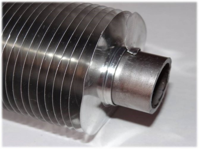 - Между ребрата преминават турбулентни въздушни вихри. Това ви позволява да увеличите интензивността на пренос на топлина през цялата тръба.