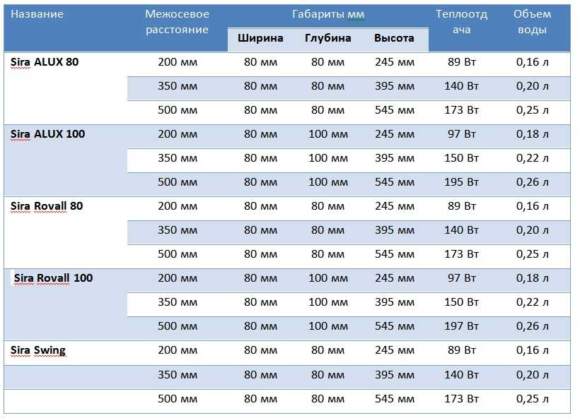 Sira R.S. батерийни секции Биметалите имат следните размери: височина - 372 мм, дълбочина - 95 мм, ширина - 80 мм. Компактността на радиаторите позволява да се инсталират в помещения с малка площ. Сглобяването на секциите се извършва само в четен брой. При желание дистрибуторът ще може да изпълни индивидуална поръчка. Максималният брой секции не трябва да надвишава 20 броя.