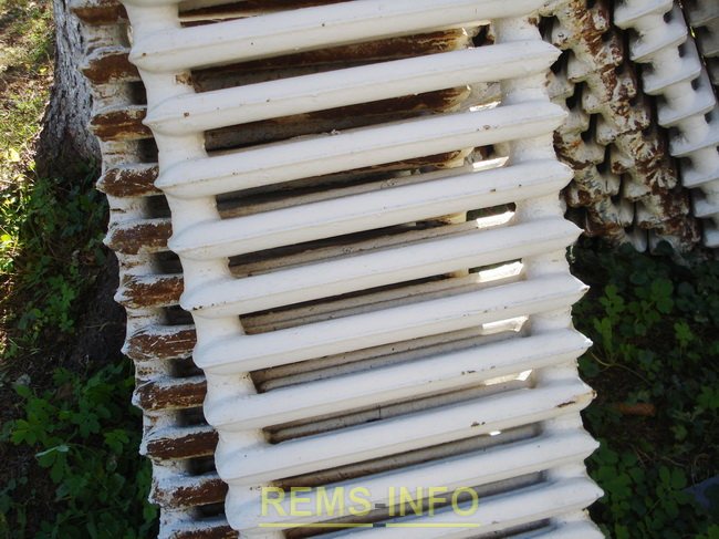 За демонтиране на батериите се изискваше мелница, която беше отрязана от чугунните батерии. Направихме го заедно със съсед, защото батериите са много тежки. И те не съжаляваха за секциите, което се отрази на теглото им. При отрязването на батериите под тръбата беше поставен контейнер, така че течността, която може да се намира в батериите, да изтече. Старите батерии бяха изнесени на улицата. С течение на времето те могат да бъдат бракувани.