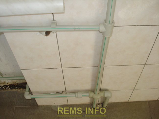 Полипропиленовите тръби бяха положени в отворите, получени с помощта на фитинги: адаптери, тройници и ъгли.