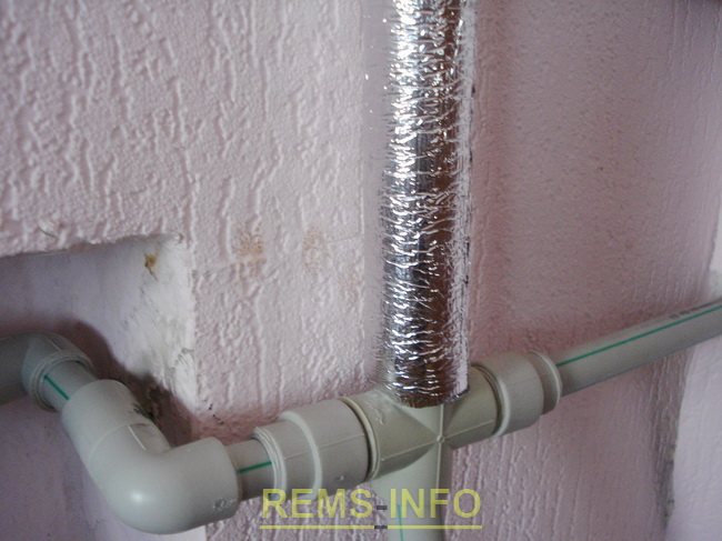 Според мен вътрешните тръби не изискват допълнителна изолация и изолация, въпреки че някои от съседите ми са направили облицовано с фолио полипропиленово обвиване на тръби. Според тях това е необходимо, за да може по-малко топлина да отива в стените. Преценете сами как изглежда външно ...