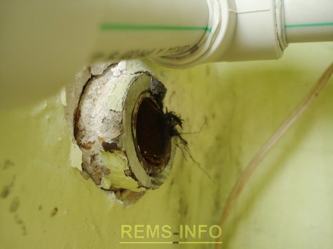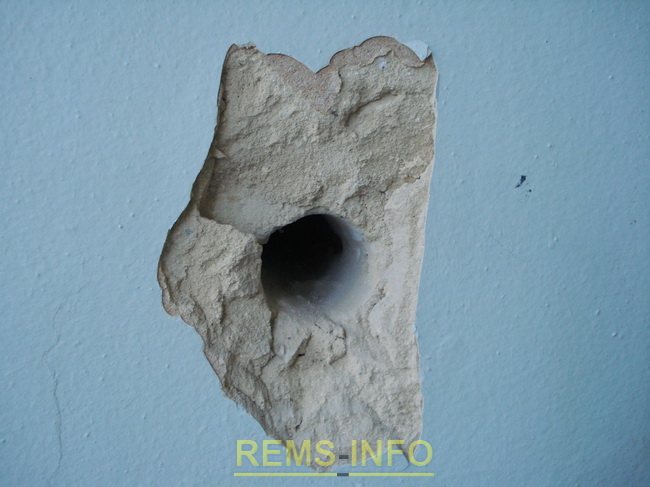 В стените между помещенията бяха направени дупки с големината на тръбата. Опитахме се да го направим възможно най-внимателно, но не винаги беше възможно ...