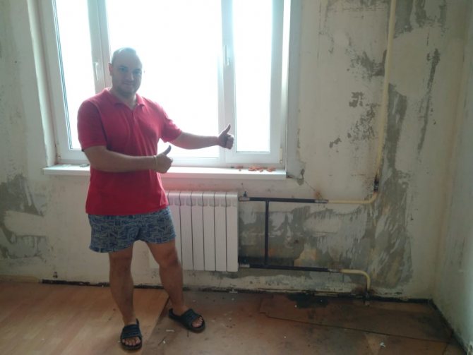 Първата стъпка беше демонтирането на старата отоплителна система, състояща се от батерии и тръби. Батериите бяха направени от чугун и напълно изработени. Тръбите бяха напълно запушени, така че тяхната подмяна дори не беше обсъждана, а от само себе си.