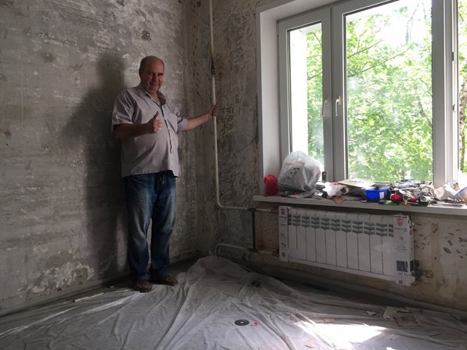 Процесът на подмяна на тръби беше затруднен от факта, че в нашата къща отоплителните тръби са вградени в стените. Ето малко теория. Следователно демонтирането на стари тръби е можело да доведе до нула ремонтите във всички апартаменти. Затова решихме да се справим без големи загуби и да не докосваме старите тръби в стените. Решиха да прокарат нови тръби вътре в апартамента близо до стените. Старите метални тръби бяха изрязани възможно най-близо до стената с мелница. Впоследствие ще трябва да се поправи, така че да не се вижда.