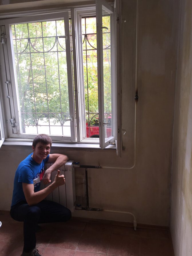 Следващият етап от работата беше инсталирането и свързването на батерии - биметални радиатори. Изработени са от два метала. Изработен от стомана, която има якост, и алуминий, който има отлична топлопроводимост и пластичност. Рамката на биметалния радиатор може да издържи натоварвания с високо налягане. Калъфът за биметални радиатори е изработен от алуминий, а формата му е с оребрена форма. Ето как е проектиран радиаторът за по-добро разсейване на топлината.