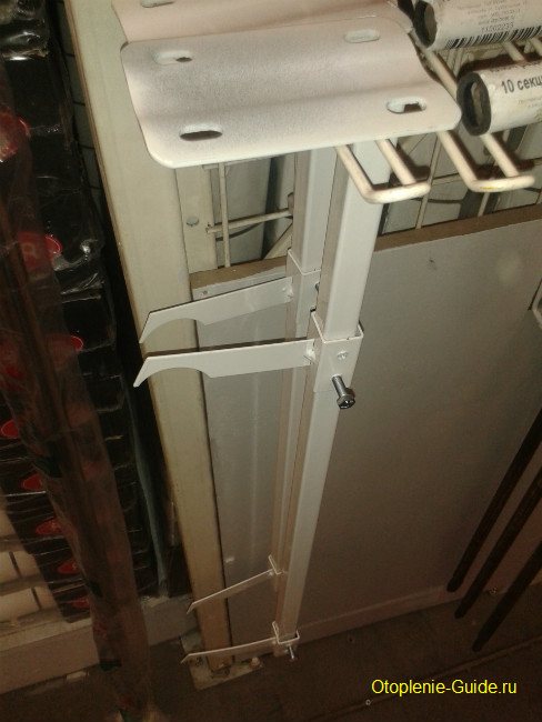 Ако батерията е монтирана близо до газобетон, прегради от гипсокартон или близо до прозорец от пода до тавана (стената не позволява монтирането на скоби), се използват само подови стойки.