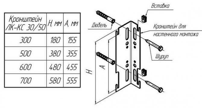 Забележка! Помислете за размерите на опорите, преди да закупите. Те са направени за закрепване на секции с различна дълбочина. Във всеки случай държачът трябва да осигури междина на стените най-малко 30-50 mm.