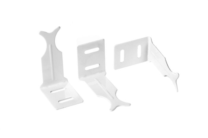 Ъгловите държачи се използват и за леки конструкции. Ъгловата скоба може да бъде прикрепена отляво или отдясно благодарение на вдлъбнатините от двете страни.