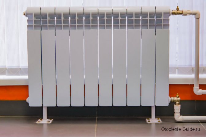 - По същия начин се избира броят на подовите стойки за радиатори. На две опорни точки е инсталирана батерия за 6-8 зъба и когато се добавят всяка следваща 5-7 секции, се инсталира още една стойка.