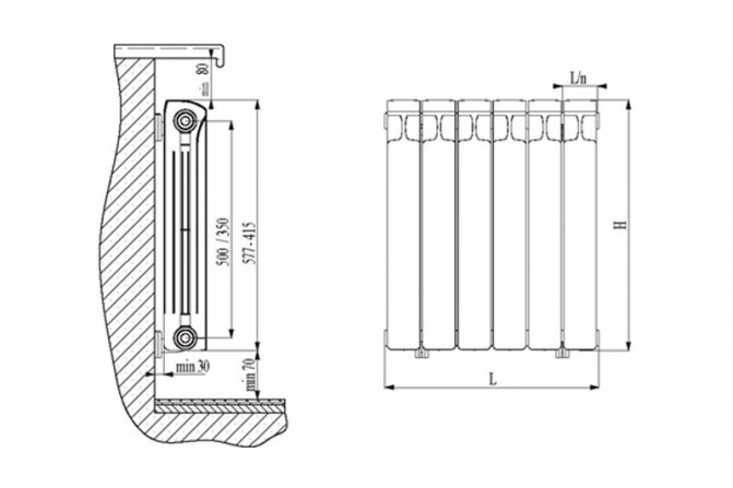 - Между радиатора за отопление и стената трябва да има празнина от поне 25 мм, а още по-добре - 30-50 мм.