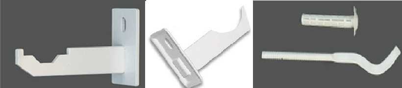 В допълнение към щифтовите скоби за батерии, куките са изработени от чугун. Те са допълнени с дюбели. Продуктът се монтира по следния начин: пробива се отвор, в който се забива пластмасов дюбел. В него се завинтва държач, който има резба от едната страна.