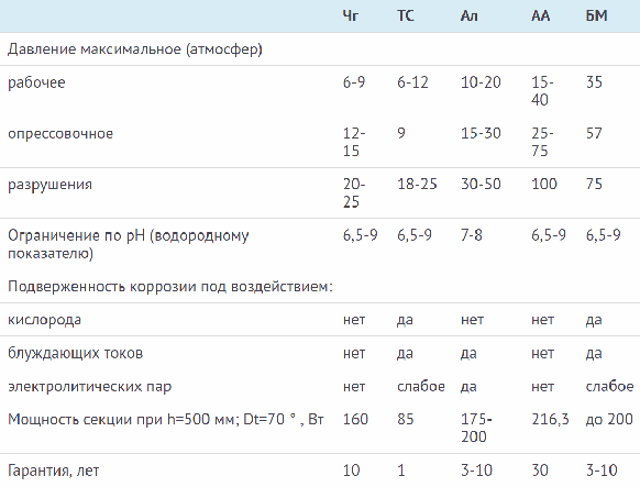 За да изберете кои чугунени отоплителни радиатори са най-подходящи за вашите условия, трябва да вземете предвид следните технически параметри: