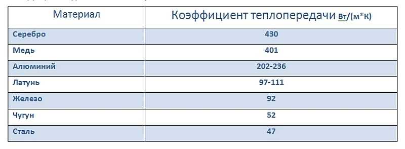Ясно се вижда, че топлопредаването на алуминия е 2 пъти повече от желязото.