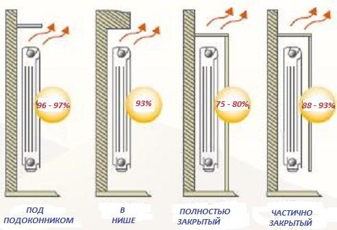 Топлопредаването на 1 секция биметални радиатори зависи пряко от правилното разположение на нагревателя