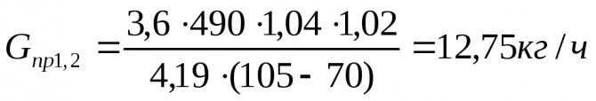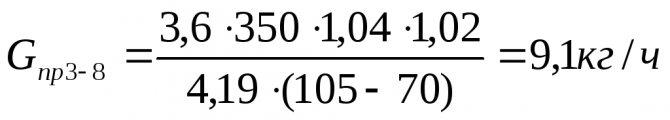 Когато всички корекционни коефициенти са известни, мощността на отоплителната система се изчислява за всяка стая, като се използва формулата: