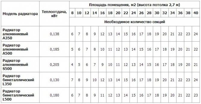 Изчисляване на секциите на отоплителния радиатор по площ