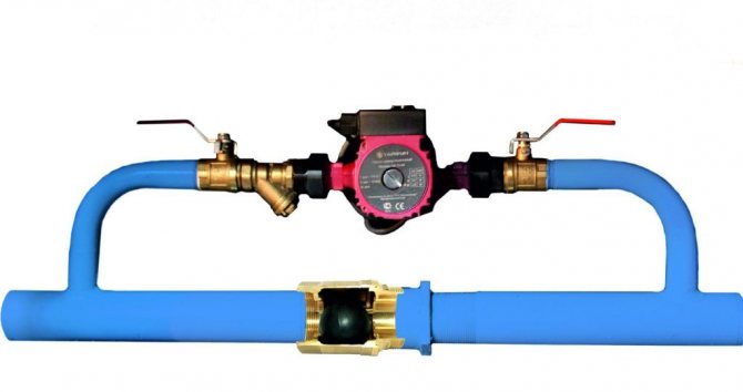 Байпасът на помпата ще бъде по-малък или със същия диаметър като основната линия. Как да направите байпас за отопление правилно, в този случай няма основна разлика. В края на краищата той е инсталиран само така, че в случай на изключване на помпата циркулацията може да продължи чрез гравитация.