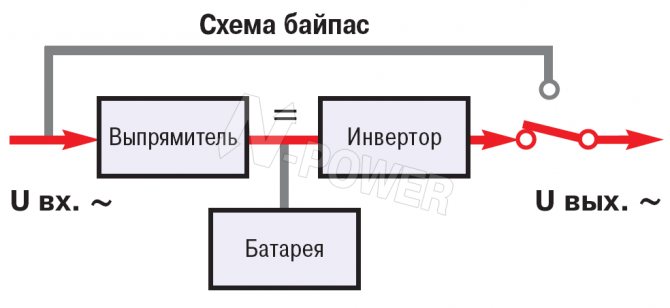 - отваря и двата пътя за TN: към батерията и по байпаса.
