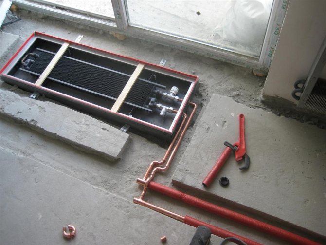 Ако искате да направите инсталацията на подовия конвектор със собствените си ръце, препоръчваме ви да обмислите мястото за неговото инсталиране дори на етапа на изграждане на сградата - това ще улесни организирането на ниша с подходяща дълбочина. освен това самата ниша трябва да е с 1-1,5 см по-голяма (от всяка страна) от металната кутия на устройството