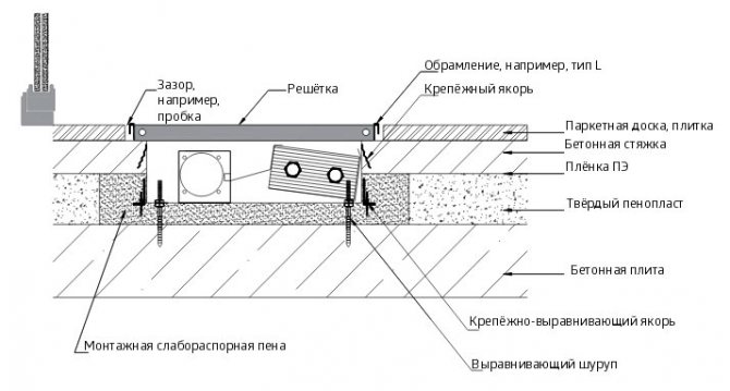 ... В същото време е необходимо да се гарантира, че горната част, където ще бъде разположена декоративната решетка, е на едно ниво с бъдещото подово покритие.