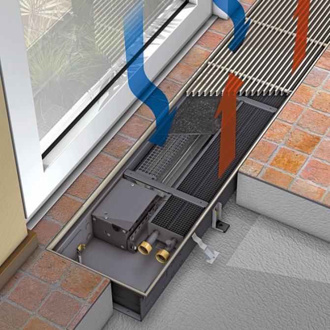 Препоръчително е да се осигури място за монтиране на конвектор, вграден в пода на етапа на строителството на сградата. В този случай организирането на ниша за инсталиране на отоплително устройство няма да създаде проблеми.