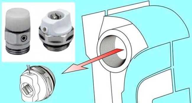 В чугунен радиатор няма отвор за стандартен клапан в щепсела. Има майстори, които се опитват да монтират клапан за отстраняване на въздушен шлюз чрез пробиване и почукване върху чугунен щепсел. Но тази структура може да бъде нарушена от такова явление като воден чук, когато налягането се повиши. Изходът от тази ситуация е инсталирането на автоматичен обезвъздушител, който съответства на размера на чугунената щепсела на радиатора. И също така те не се страхуват от запушване.