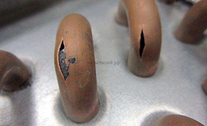 - Подмяна на плочи или запояване. В случай на корозивни образувания, които позволяват визуално откриване на течове, ние заместваме отделни плочи или отстраняваме дефекта чрез заваряване. По пътя подравняваме вдлъбнатините по ребрата с гребен.