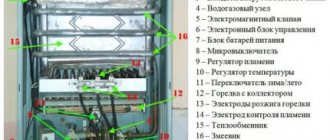7 - показва габарит на циферблата; 8 - показва термометър за набиране; 9 - дренажен кран; 10 - втулка за сензор за температура на връщащата вода; 11 - трипътен клапан с пропорционален