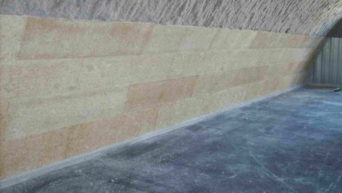 Пръскането на минерална вата е почти монолитно свързано със стената