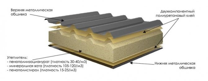 Във всеки случай панелът е направен от метални листове, между които е разположена самата изолация. Панелите се предлагат както за външен, така и за вътрешен монтаж. материали: таван и подови плочки, "сандвичи" с ъглова конфигурация.